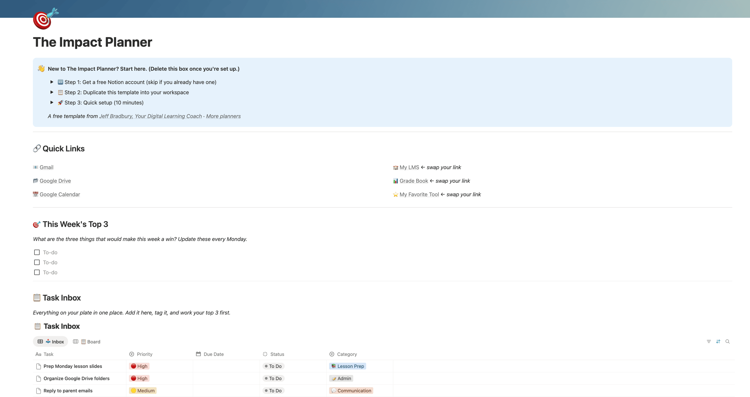Get The Impact Planner (Free Notion Weekly Planner for Teachers)