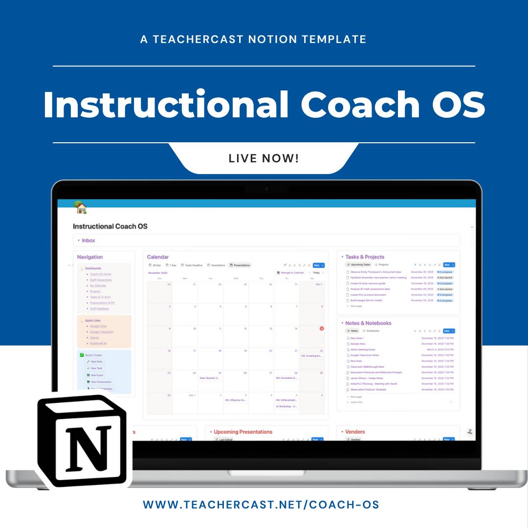 If you’re like most instructional coaches I know, you’re probably tracking staff interactions in a spreadsheet, keeping PD materials scattered across Google Drive, and managing your to-do list in your head (or on a growing pile of sticky notes).